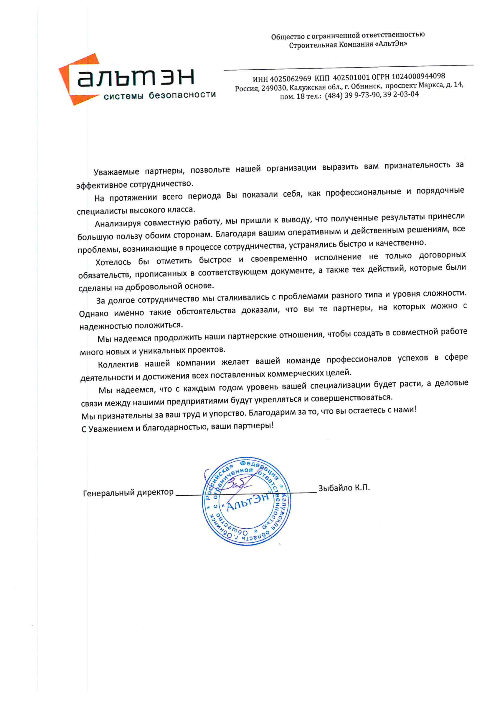 Уважаемые партнеры, позвольте нашей организации выразить вам признательность за эффективное сотрудничество.